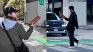 มิติใหม่ของการข้ามถนน..แค่เดินถืออิฐและโบกรถเบาๆ แค่นี้รถก็จอดแล้ว
