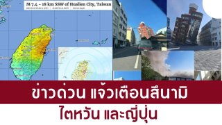 เช้านี้เกิดแผ่นดินไหวครั้งใหญ่ที่สุด ในไต้หวัน และญี่ปุ่นเกิดสึนามิ