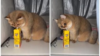 คลิปแมวดูดน้ำชาดำจากกล่องกลายเป็นไวรัล