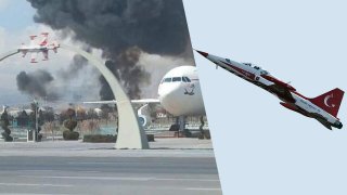 เครื่องบินรบตุรกี พุ่งชนเครื่องจักรก่อสร้าง ขณะลงจอด