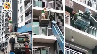 ที่ล็อกประตูพัง สาวเช่ารถกระเช้า ยกขึ้นเพื่อเข้าบ้าน