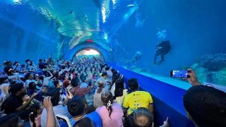 ผู้คนตกตะลึง หลังเห็นหนุ่มอ้วนแก้ผ้า โดดลงตู้ปลายักษ์ เพื่อว่ายน้ำเล่น
