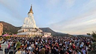 แทบแตก! ผู้คนมากมายทั้งไทยและเมียนมาร์..ทะลักเขาค้อทำบุญที่ผาซ่อนแก้ว