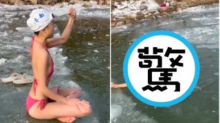 สาวจีนปลุกใจโดดลงน้ำเย็นพร้อมทำท่าแปลก
