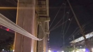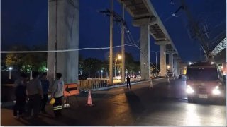 สุดระทึก! รางรถไฟฟ้าสายสีชมพู ร่วงไม่เป็นท่า..ทำเอาสายไฟโค่น รถพังยับ