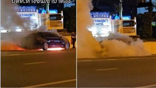 เก๋งหรูจอดอยู่ จู่ๆ มีไฟพุ่งควันโขมง..หน้าปั๊มทางขึ้นเขาป่าตอง