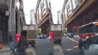 สาวข้ามถนนมองถนนข้างเดียวโดนรถชนกระเด็น