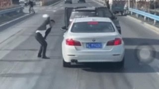 หนุ่มหัวร้อน ถือมีดมาสับ BMW คนขับหน้าซีด รีบล็อกรถขังตัวเอง