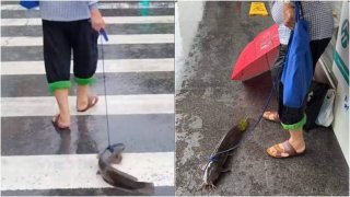 แปลกแต่จริง ลุงจูงปลาดุก มาเดินเล่น