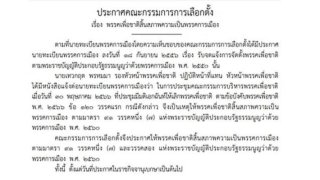 กกต. ประกาศให้พรรคเพื่อชาติ สิ้นสภาพความเป็นพรรคการเมือง