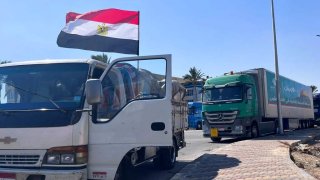 รถบรรทุกที่ช่วยเหลือกาซาเดินทางมาถึงทางแยกราฟาห์แล้ว!!