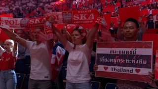พลังหมูกระทะ! หนุ่มชูป้ายเชียร์นักตบลูกยางสาวไทยบอก "ชนะแมตช์นี้ เลี้ยงหมูกระทะทั้งทีม"