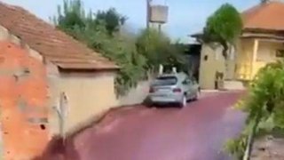 แม่น้ำไวน์แดง! เมืองเลวีรา ประเทศโปรตุเกส เกิดเหตุตู้ไวน์ขนาดใหญ่ 2 ตู้แตก ส่งผลให้มีไวน์ท่วมถนน