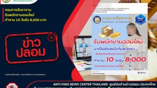 ข่าวปลอม อย่าแชร์! ❌ กรมการจัดหางานรับพนักงานออนไลน์ ทำงาน 10 วันรับ 8,000 บาท