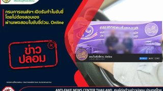 ข่าวปลอม อย่าแชร์! ❌ กรมการขนส่งฯ เปิดรับทำใบขับขี่โดยไม่ต้องสอบเอง ผ่านเพจสอบใบขับขี่ด่วน. Online