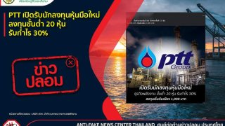 ข่าวปลอม อย่าแชร์! ❌ PTT เปิดรับนักลงทุนหุ้นมือใหม่ ลงทุนขั้นต่ำ 20 หุ้น รับกำไร 30%