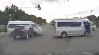 ทัวร์ลงยับจวกปิดสี่แยกไฟแดง ให้ขบวนรถตู้ 70 คันผ่านฉลุย