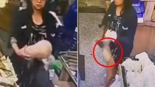 หญิงจีนขโมยฟักทองลูกใหญ่โดยใส่ไว้ในกกน.