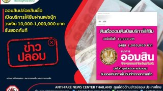 ข่าวปลอม อย่าแชร์! ❌ ออมสินปล่อยสินเชื่อเปิดบริการให้ยืมผ่านเฟซบุ๊ก วงเงิน 10,000-1,000,000 บาท รับยอดทันที