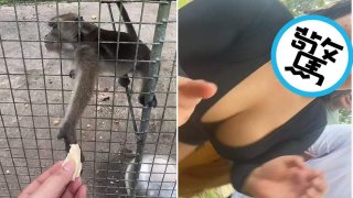 สาวฟิลิปปินส์ตกใจหลังลิงในกรงแย่งมือถือไป