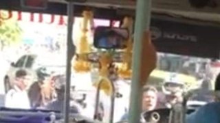 โชเฟอร์กลัวร้องเสียงหลง! หลังแค่บีบแตรใส่ ปิกอัพกับพาพวกมาล้อมรถเมล์