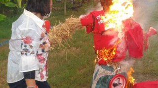 พวกตระบัดสัตย์! "เสื้อแดงสมุทรสาคร" สุดเดือดเผาหุ่น "ทักษิณ" ลั่น "มีพวกมึง ไม่มีพวกกู" อีกต่อไป