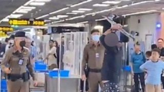 สนามบินวุ่น! ชายต่างชาติของขึ้นเอา "สเก็ตบอร์ดฟาดตำรวจ" ชาวเน็ตเสียงแตกการระงับเหตุของ ตร. คือการยืนดู