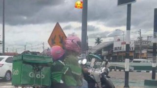 โมเมนต์น่ารัก! แม่ไรเดอร์พาลูกวิ่งงานช่วงหยุดยาว ลูกกอดเอวแน่นขณะจอดติดไฟแดง