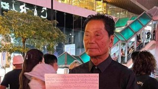 ทวี ไกรคุปต์ ร่วมม็อบกลางแยกราชประสงค์ พร้อมถือกระดาษเขียนบอก ไม่เอาพรรคที่ทรยศเสียงประชาชน-ไม่เอาพรรคเผด็จการ