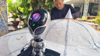 สุดฮือฮา จานบิน UFO หมุนได้โผล่ร่วมขบวนเทียนพรรษาโคราชที่ "วัดม่วง"