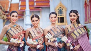 งามอย่างไทย! เผยภาพ 54 สาวงาม Miss Universe Thailand 2023 เอาฤกษ์เอาชัย ตักบาตรฟังธรรม ณ วัดเบญฯ