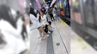 สาวโดนทัวร์ลงหลังนั่งบนหลังแฟนเม้าท์มอยกับเพื่อน