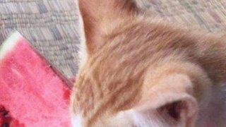 หลักฐานคาปาก! ทาสเผยภาพเผลอแค่แป๊ปเดียว "แมวส้ม" ตัวแสบแอบย่องมากินแตงโม อย่างเอร็ดอร่อย