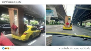แท็กซี่สู้ชีวิต! เปิดฝากระโปรงท้าย "ขนตู้เสื้อผ้า" โลกออนไลน์ระทึกกันทั้งถนน หวั่นเกิดอันตราย