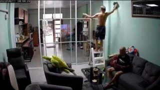 เตือนภัยอย่าประมาท! เผยคลิปคุณตาสูงวัย ปีนบันไดเช็ดกระจก พลาดหงายหลัง ตกกระแทกโต๊ะกระจก