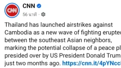 CNN ถูกวิจารณ์หนัก! รายงาน “ไทยเปิดฉากโจมตีทางอากาศกัมพูชา” ชาวเน็ตไทยเสียงแตก มองสหรัฐแทรกแซงเกินขอบเขต