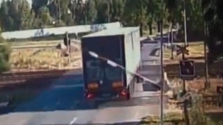 ระทึก! รถบรรทุกเข้าไปถูกขังในไม้กั้นรางรถไฟ แต่คนขับกลับไม่ฝ่าไม้กั้นออกไป