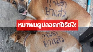 ฉันไม่ได้บ้านะ!! หนุ่มคว้าปากกาเขียนบนตัวหมา "ตูฉีดยาแล้ว" ไม่ต้องกลัวนะ