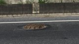 อีกแล้ว ฝาท่อกลับด้าน ลงทางด่วนบางบ่อ รถยางแตกกันเป็นแถว