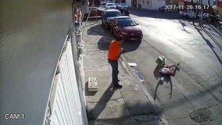ซวยจัด!! วินาทีนร.หญิงถูกสายเคเบิ้ลกระชากปลิวคว่ำ (ชมคลิป)