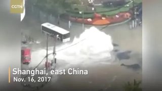 เซี่ยงไฮ้แตกตื่น! ท่อประปาแตกกลางสี่แยก มวลน้ำมหาศาลพุ่งสูงกว่า 2 เมตร