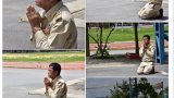 โลกออนไลน์แชร์ภาพสุดซึ้ง หนุ่มเร่ร่อนเนื้อตัวมอมแมม แต่ใจภักดี ขอกราบข้างกำแพง กราบตรงไหนก็ถึงพ่อ พอพอกัน