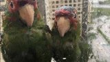 นกแก้ว 2 ตัวหนีพายุ มาเกาะหน้าต่างชั้น 22 ของโรงแรมแห่งหนึ่งในรัฐฟลอริด้า