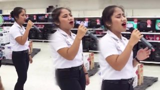อึ้งกันทั้งห้าง! พนักงานสาวคว้าไมค์ลองเครื่องเสียง