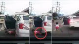 หวิดเหยีบขาลูก!! เด็กร่วงจากรถบนถนน เพิ่งรู้ตัวเมื่อรถเคลื่อนออกไปแล้ว