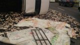 รถปิคอัพขนปลาเต็มคัน เสียหลักเทกระจาดปลาเกลื่อนถนน บริเวณทางพิเศษบางพลีสุขสวัสดิ์