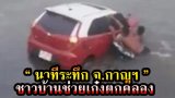นาทีระทึก | ชาวบ้านกระโดดน้ำไปช่วยเก๋งตกคลอง จ.กาญฯ