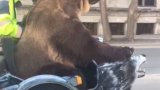หมีที่นั่งรถเล่นโบกมือทักทายผู้คน พร้อมทีมไบค์เกอร์
