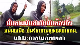 คนจริงหนุ่มเหนือ ปั่นจักรยานฝ่าฝนเข้า กทม. เพื่อไปประกวดไมค์ทองคำ