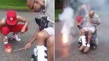 เล่นพิเรนทร์! เมื่อ "หนุ่มพิการ"จุดประทัดใกล้ๆตัว ทั้งที่ตัวเองก็นั่งบนรถเข็น แถมรถเข็นไม่ยอมขยับ